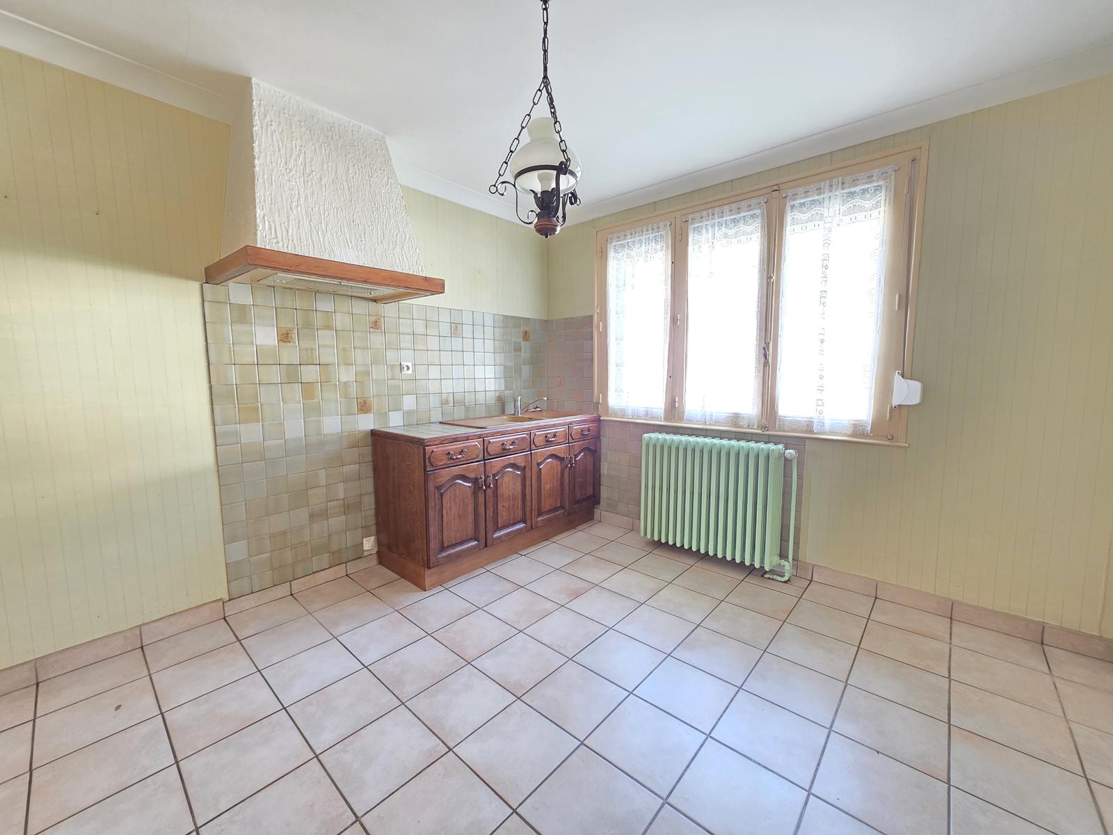 Secteur calme, maison comprenant une cuisine, un séjour, 3 chambres (possibilité de 5 chambres), un bureau, une salle d’eau, WC séparé, une chaufferie buanderie, un garage, un coin atelier et un jardin.