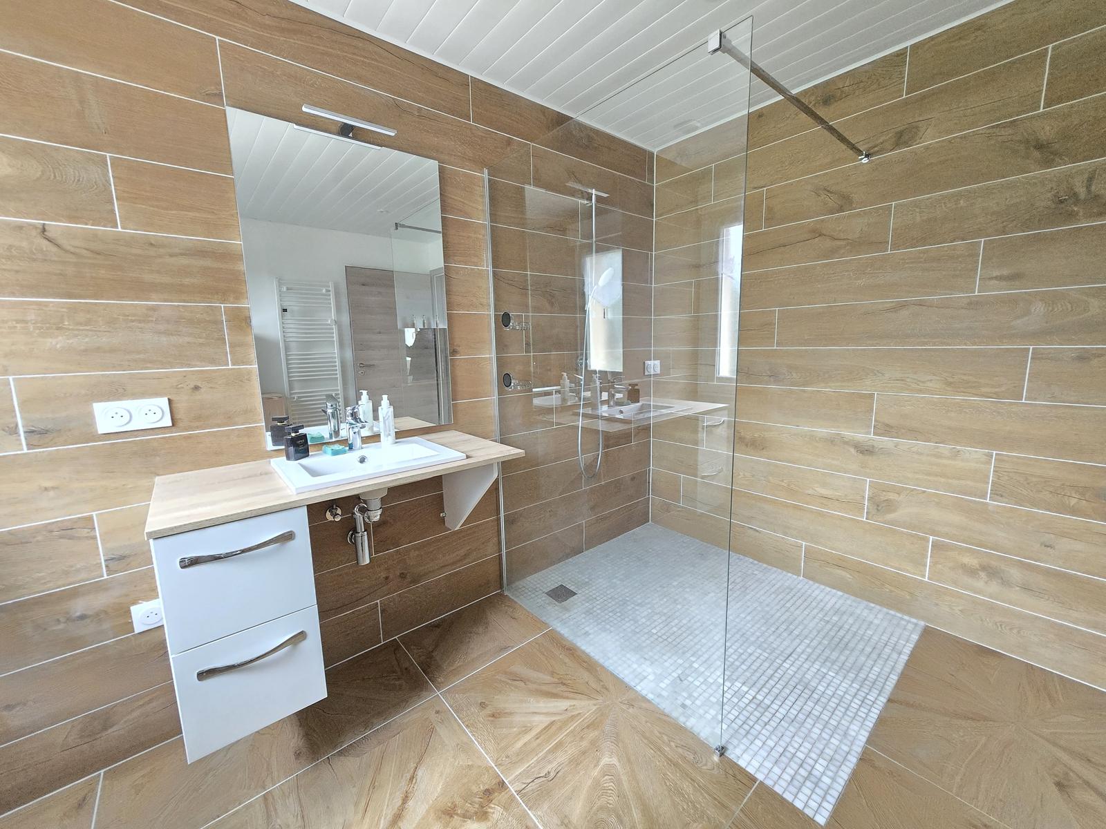 Belle maison de 1998 comprenant une cuisine ouverte sur séjour (pièce de vie d’environ 50m²) en accès direct sur terrasse et jardin, une grande salle d’eau avec douche à l’italienne, 4 chambres dont une au RDC et un espace pouvant être aménagé en bureau.