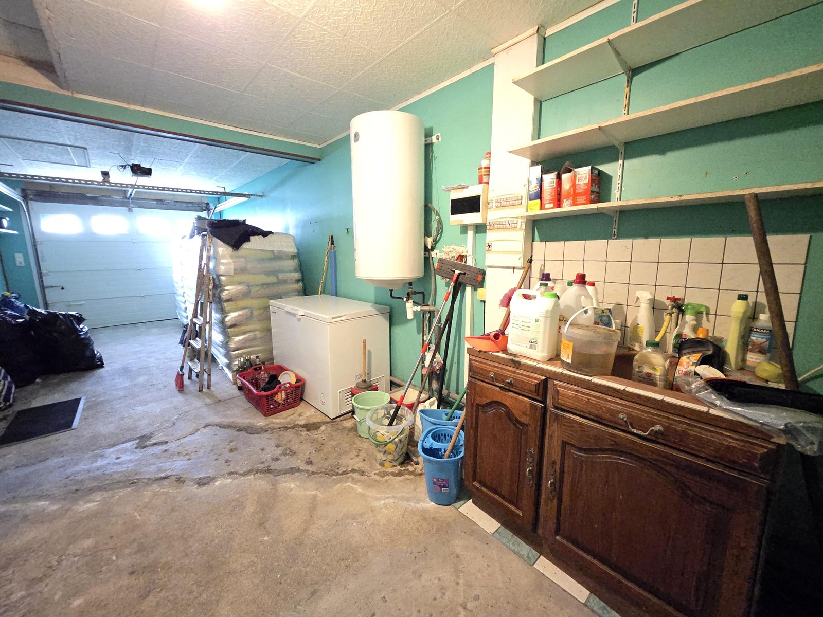 Un grand garage avec un point d’eau et un accès jardin comprenant une dépendance et appentis.