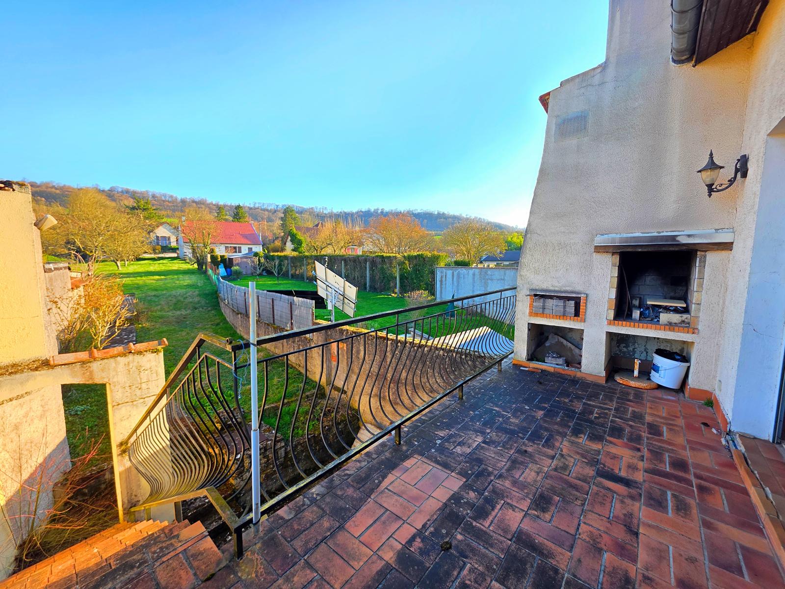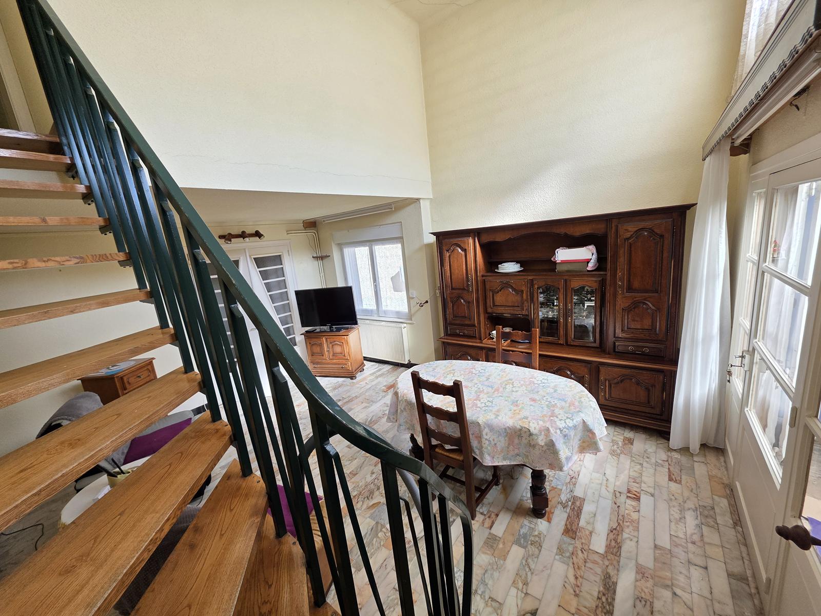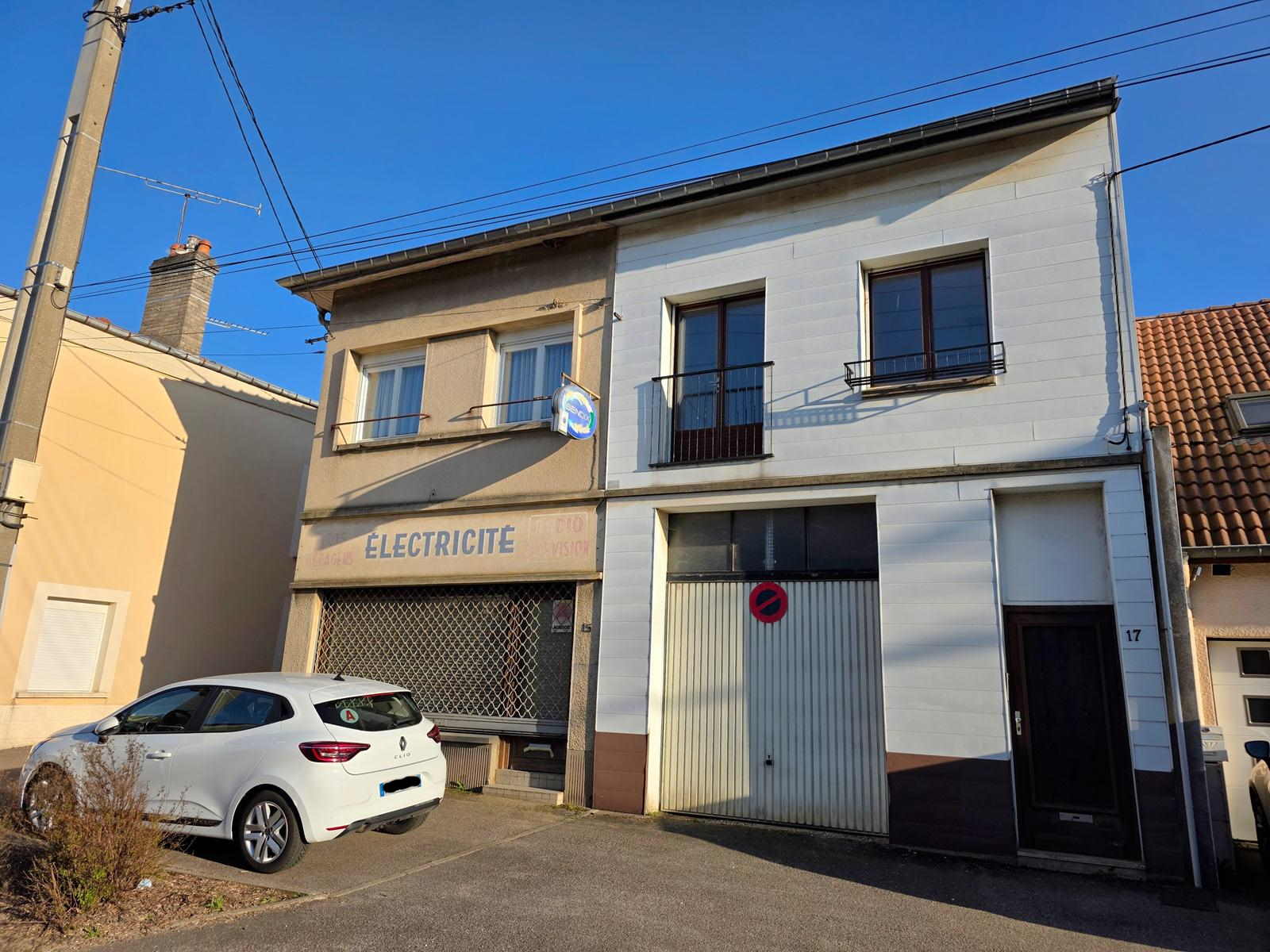 Grande maison avec un beau potentiel comprenant 2 cuisines, 5 chambres, un bureau, 2 séjours, 2 SdB, 3 garages, une chaufferie, une terrasse et un jardin.