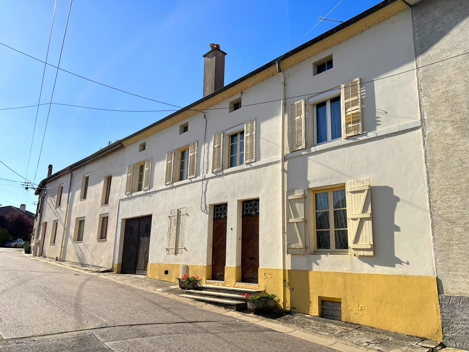 Maison à rénover comprenant une cuisine, un séjour, une salle à manger, 4 chambres, une SdB avec WC, une grande pièce de stockage, un garage ouvert sur grange avec étage, ainsi qu’une cour et une cave.