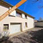 Maison comprenant une cuisine équipée ouverte sur séjour, 3 chambres, une salle de bain et une salle douche, 2 WC, un grand garage (avec point d’eau et emplacement machine à laver) accessible depuis la maison.