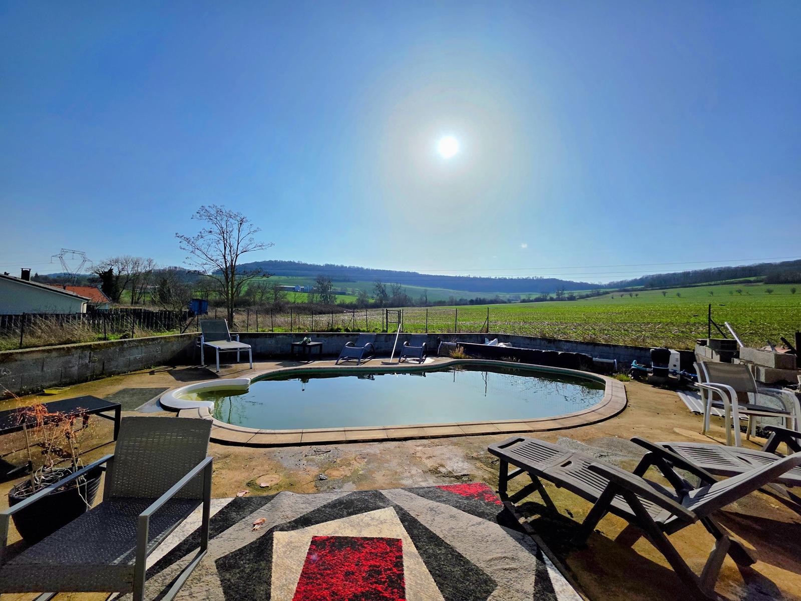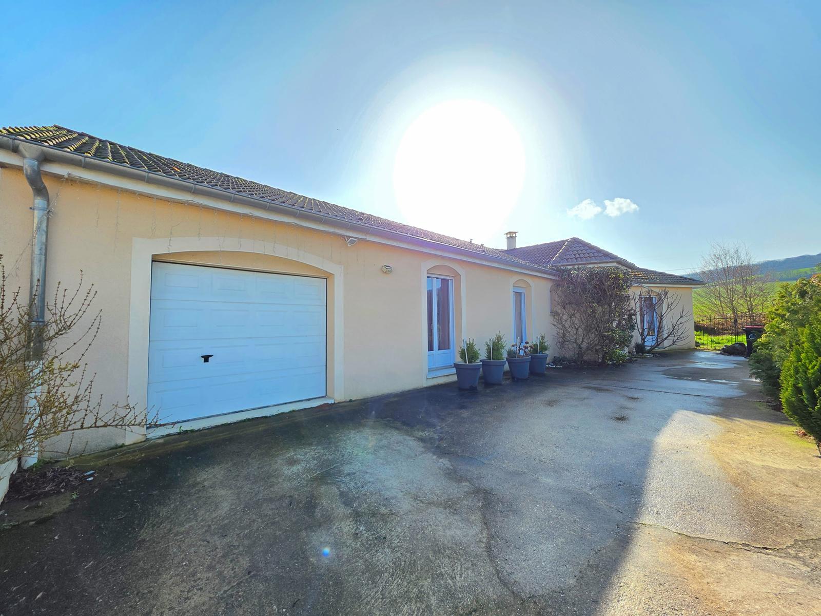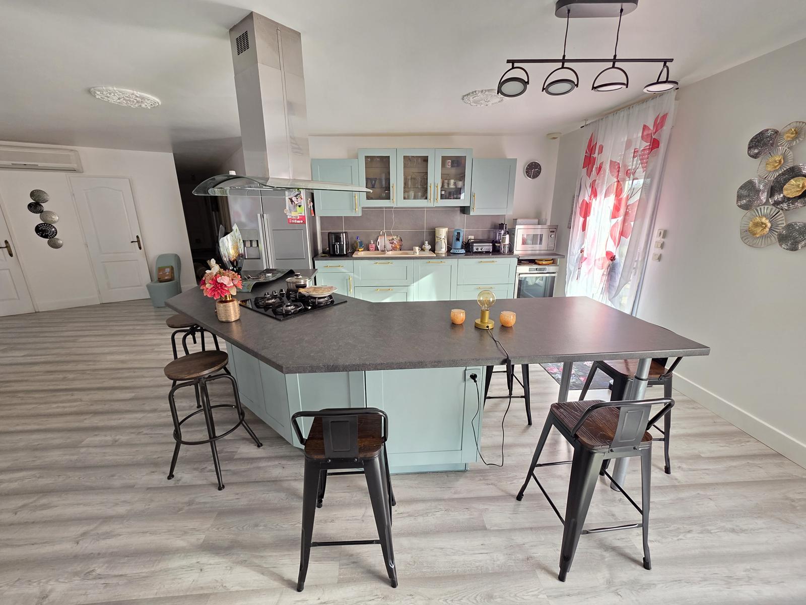 Maison de plain-pied comprenant une cuisine équipée ouverte sur grand séjour en accès direct sur terrasse, jardin et piscine. 5 chambres, une salle d’eau, WC séparé, un garage.