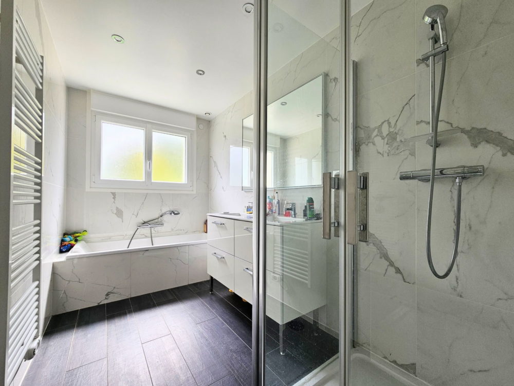 Cette maison en demi-niveau se situe au calme dans une impasse. Elle se compose d’une cuisine ouverte sur séjour, 5 chambres, 1 salle de bain et 1 salle d’eau, 2 WC séparés, un grand sous-sol permettant de stationner 3 véhicules, une buanderie + un cellier.